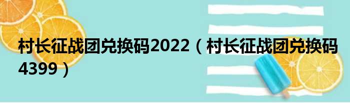 村长征战团兑换码2022(村长征战团兑换码4399)