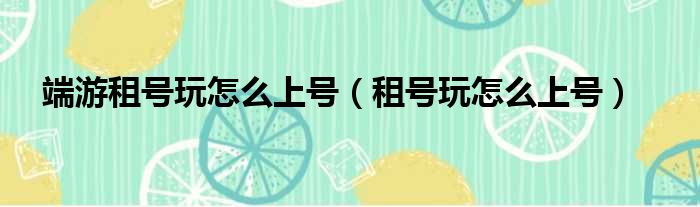 导读 大家好,今天小六子来为大家解答以下的问题,关于端游租号玩怎么上号,租号玩怎么上号这个很多人还不知道,现在让我们一起来看看吧!1、租的