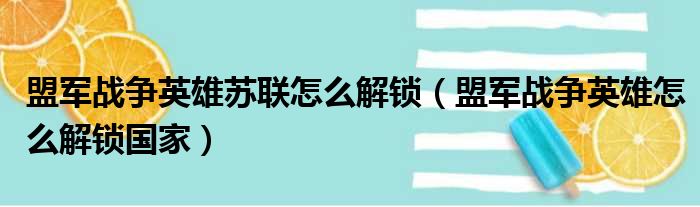 导读 大家好,今天小六子来为大家解答以下的问题,关于盟军战争英雄苏联怎么解锁,盟军战争英雄怎么解锁国家这个很多人还不知道,现在让我们一起