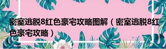 导读 大家好,今天小六子来为大家解答以下的问题,关于密室逃脱8红色豪宅攻略图解,密室逃脱8红色豪宅攻略这个很多人还不知道,现在让我们一起来