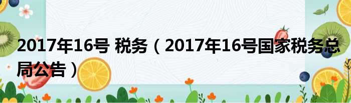 大家好,今天小六子来为大家解答以下的问题,关于2017年16号 税务,2017年16号国家税务总局公告这个很多人还不知道,现在让我们一起来看看吧!