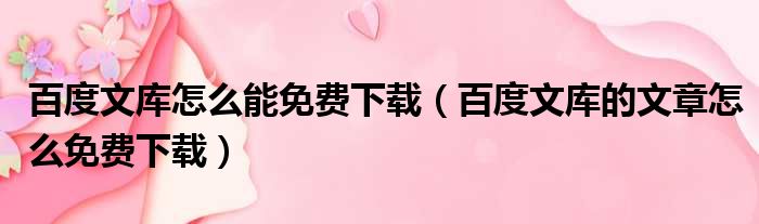 百度文库怎么能免费下载(百度文库的文章怎么免费下载)