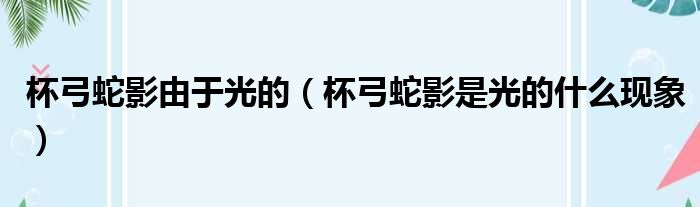 杯弓蛇影由于光的(杯弓蛇影是光的什么现象)