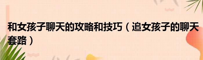 和女孩子聊天的攻略和技巧(追女孩子的聊天套路)