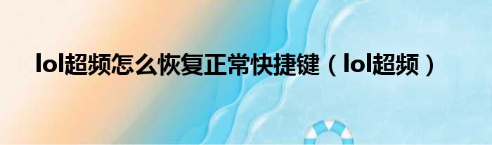 lol超频怎么恢复正常快捷键(lol超频)