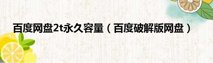 大家好,今天小六子来为大家解答以下的问题,关于百度网盘2t永久容量,百度破解版网盘这个很多人还不知道,现在让我们一起来看看吧!