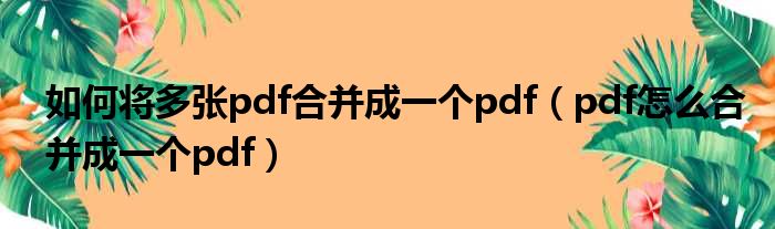 如何将多张pdf合并成一个pdf(pdf怎么合并成一个pdf)