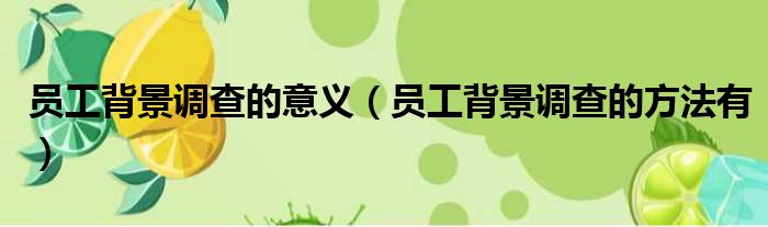 员工背景调查的意义(员工背景调查的方法有)