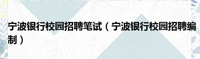宁波银行校园招聘笔试(宁波银行校园招聘编制)