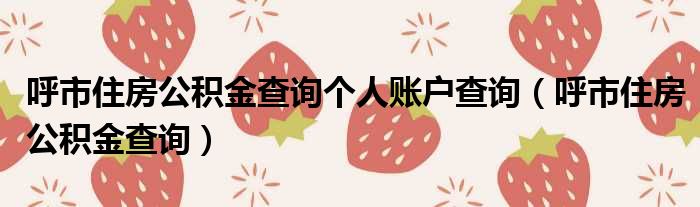 呼市住房公积金查询个人账户查询(呼市住房公积金查询)