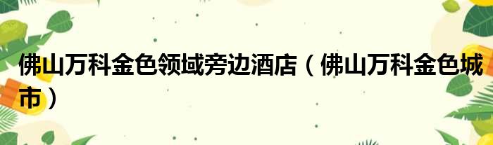 佛山万科金色领域旁边酒店(佛山万科金色城市)