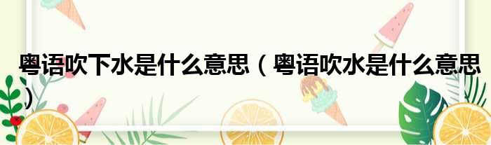 粤语吹下水是什么意思(粤语吹水是什么意思)