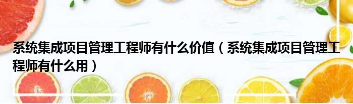 系统集成项目管理工程师有什么价值(系统集成项目管理工程师有什么用)