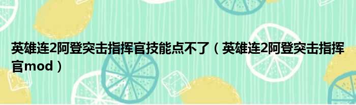 英雄连2阿登突击指挥官技能点不了(英雄连2阿登突击指挥官mod)