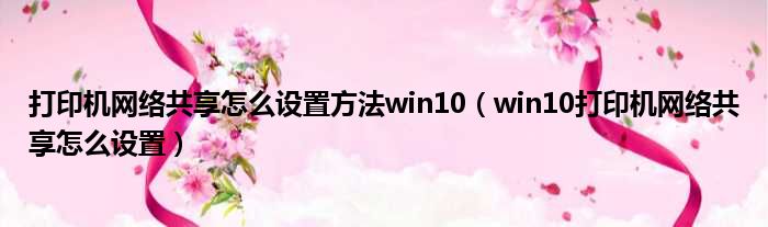 打印机网络共享怎么设置方法win10(win10打印机网络共享怎么设置)