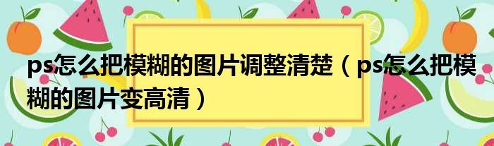ps怎么把模糊的图片调整清楚(ps怎么把模糊的图片变高清)