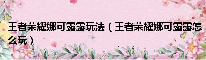 王者荣耀娜可露露玩法(王者荣耀娜可露露怎么玩)