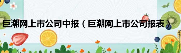 巨潮网上市公司中报(巨潮网上市公司报表)