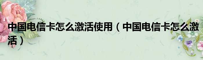 中国电信卡怎么激活使用(中国电信卡怎么激活)