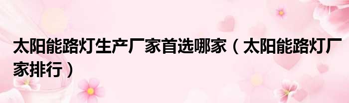 太阳能路灯生产厂家首选哪家(太阳能路灯厂家排行)