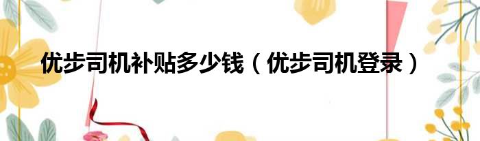 优步司机补贴多少钱(优步司机登录)