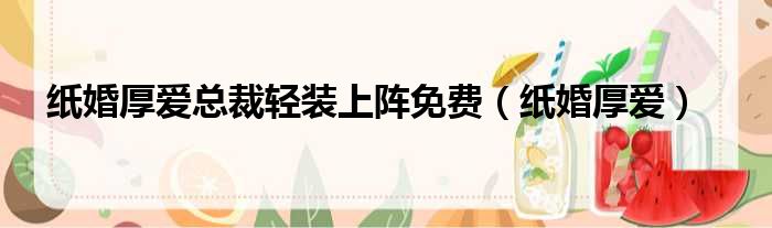 导读 大家好,今天小六子来为大家解答以下的问题,关于纸婚厚爱总裁轻装上阵免费,纸婚厚爱这个很多人还不知道,现在让我们一起来看看吧!1、纸婚