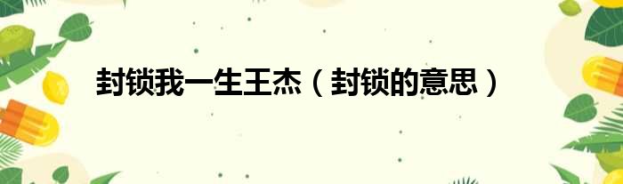 导读 大家好,今天小六子来为大家解答以下的问题,关于封锁我一生王杰,封锁的意思这个很多人还不知道,现在让我们一起来看看吧!1、封锁,指用强