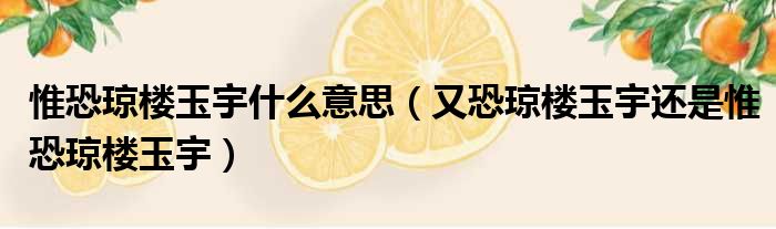 惟恐琼楼玉宇什么意思(又恐琼楼玉宇还是惟恐琼楼玉宇)