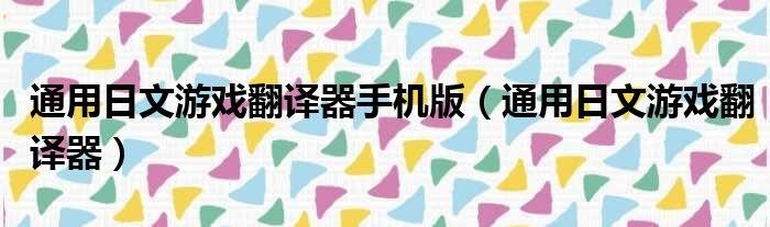 通用日文游戏翻译器手机版(通用日文游戏翻译器)
