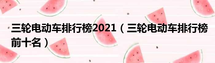 导读 大家好,今天小六子来为大家解答以下的问题,关于三轮电动车排行榜2021,三轮电动车排行榜前十名这个很多人还不知道,现在让我们一起来看看