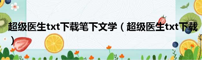 导读 大家好,今天小六子来为大家解答以下的问题,关于超级医生txt下载笔下文学,超级医生txt下载这个很多人还不知道,现在让我们一起来看看吧!1