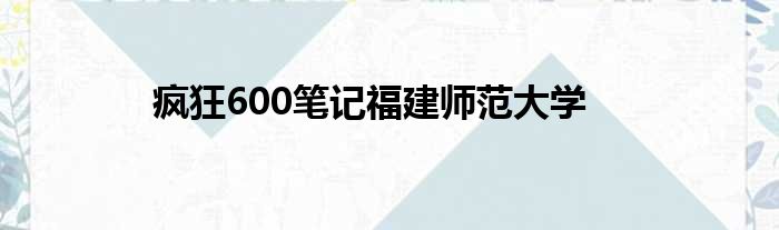 大家好,今天小六子来为大家解答以下的问题,关于疯狂600笔记福建师范大学这个很多人还不知道,现在让我们一起来看看吧!
