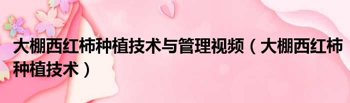 大棚西红柿种植技术与管理视频(大棚西红柿种植技术)