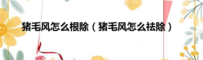 导读 大家好,今天小六子来为大家解答以下的问题,关于猪毛风怎么根除,猪毛风怎么祛除这个很多人还不知道,现在让我们一起来看看吧!1、猪毛风现
