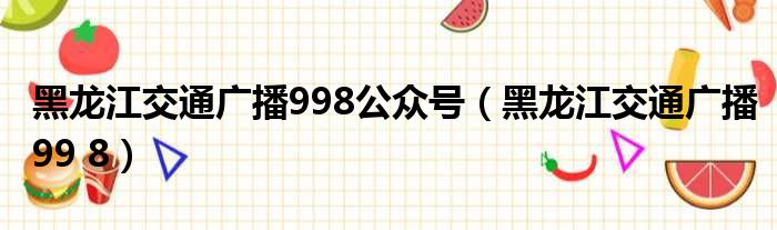 黑龙江交通广播998公众号(黑龙江交通广播99 8)