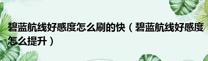 导读 大家好,今天小六子来为大家解答以下的问题,关于碧蓝航线好感度怎么刷的快,碧蓝航线好感度怎么提升这个很多人还不知道,现在让我们一起来