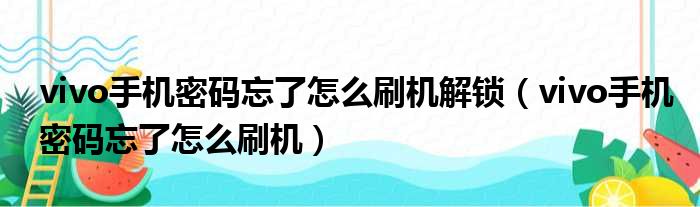 vivo手机密码忘了怎么刷机解锁(vivo手机密码忘了怎么刷机)