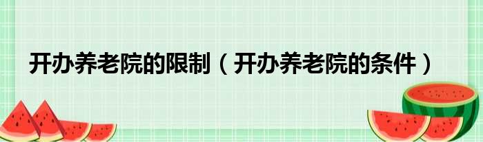 大家好,今天小六子来为大家解答以下的问题,关于开办养老院的限制,开办养老院的条件这个很多人还不知道,现在让我们一起来看看吧!
