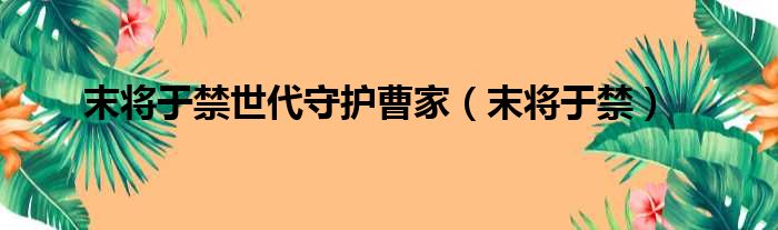 导读 大家好,今天小六子来为大家解答以下的问题,关于末将于禁世代守护曹家,末将于禁这个很多人还不知道,现在让我们一起来看看吧!1、你说的是