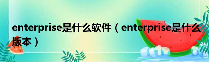 导读 大家好,今天小六子来为大家解答以下的问题,关于enterprise是什么软件,enterprise是什么版本这个很多人还不知道,现在让我们一起来看看吧