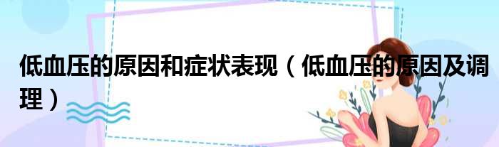导读 大家好,今天小六子来为大家解答以下的问题,关于低血压的原因和症状表现,低血压的原因及调理这个很多人还不知道,现在让我们一起来看看吧