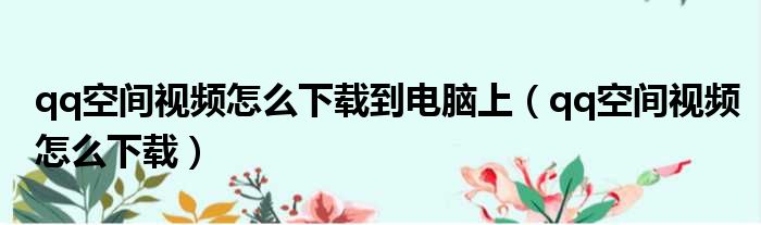 qq空间视频怎么下载到电脑上(qq空间视频怎么下载)