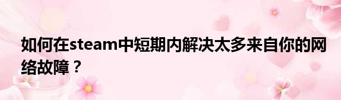 导读 大家好,今天小六子来为大家解答以下的问题,关于如何在steam中短期内解决太多来自你的网络故障?这个很多人还不知道,现在让我们一起来看看