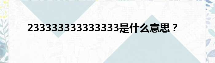 大家好,今天小六子来为大家解答以下的问题,关于233333333333333是什么意思?这个很多人还不知道,现在让我们一起来看看吧!