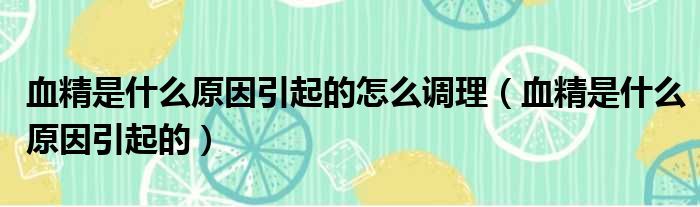 血精是什么原因引起的怎么调理(血精是什么原因引起的)