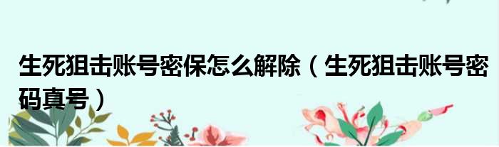 导读 大家好,今天小六子来为大家解答以下的问题,关于生死狙击账号密保怎么解除,生死狙击账号密码真号这个很多人还不知道,现在让我们一起来看