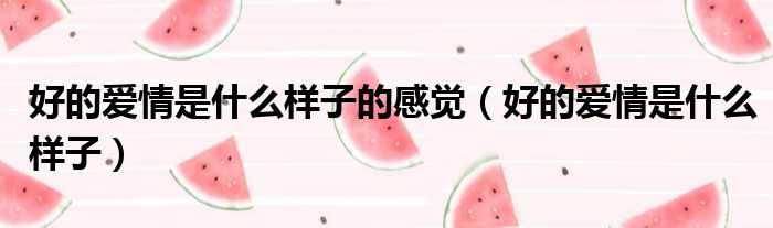 好的爱情是什么样子的感觉(好的爱情是什么样子)