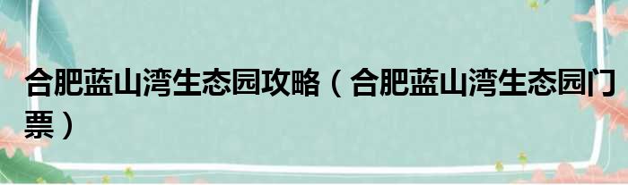 导读 大家好,今天小六子来为大家解答以下的问题,关于合肥蓝山湾生态园攻略,合肥蓝山湾生态园门票这个很多人还不知道,现在让我们一起来看看吧