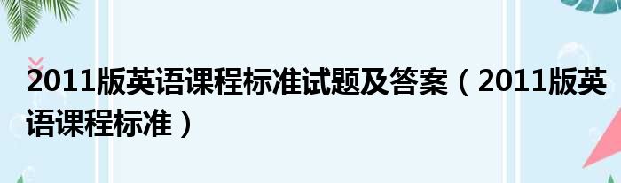 2011版英语课程标准试题及答案(2011版英语课程标准)