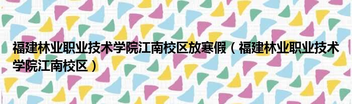 福建林业职业技术学院江南校区放寒假(福建林业职业技术学院江南校区)